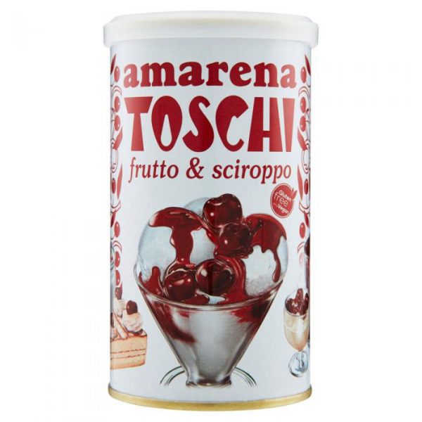 Amarena kersen, suiker, water, glucosestroop, kersensap, kleurstof: anthocyanen, voedingszuur: citroenzuur, aroma’s.